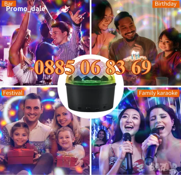 Преносимата LED нощна Bluetooth диско лампа с колонка е перфектното допълнение за всяко парти, събиране или уютна вечер у дома. Съчетаването на цветно осветление и висококачествен звук създава уникална атмосфера, подходяща както за развлечение, така и за релаксация. Лампата е компактна, лесна за пренасяне и предлага множество функции, които я правят идеален избор за всяка ситуация. Технически характеристики: