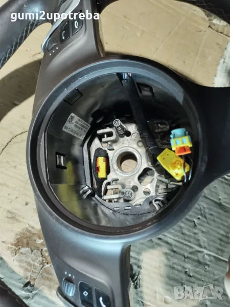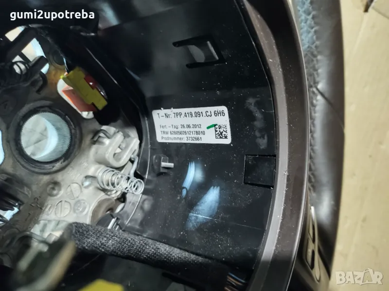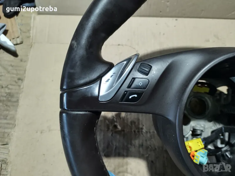Продавам Употребяван Оригинал Кожен Волан Цвят Еспресо за Porsche Cayenne 3.0D 92A/EG22/2012г Има забележки-снимани са.Здрав и Работещ.Снимките са част от описанието.
