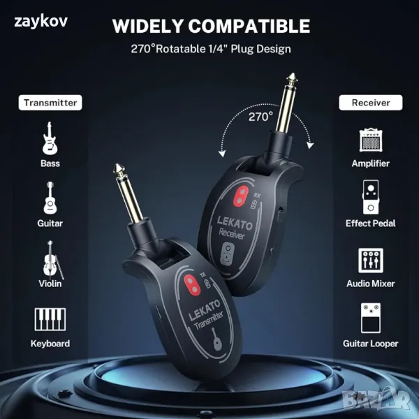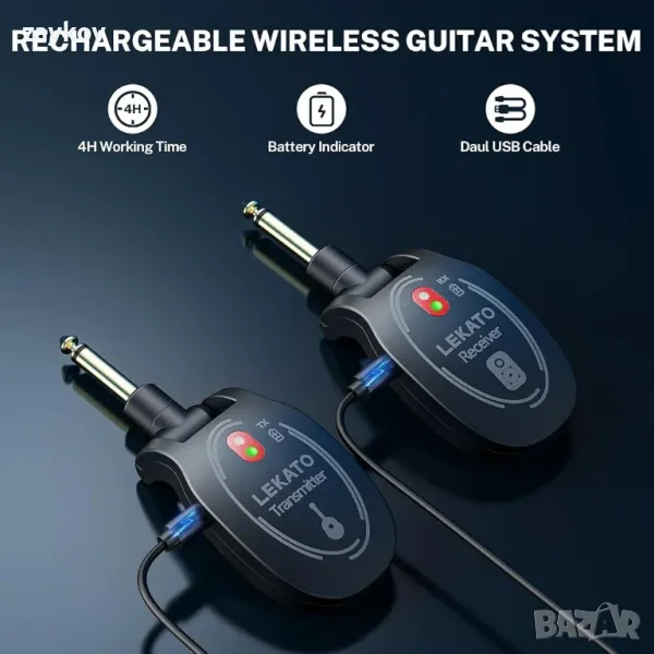 LEKATO L6 Безжична система за китара Акумулаторна китара Безжичен предавател Приемник