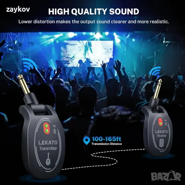 🎸 Ясно предаване на сигнала: Безжичната китарна система осигурява пълна честотна характеристика 20Hz-20kHz, така че ще чуете тона на китарата си с много детайли само с 4ms закъснение. И поддържа 4 комплекта устройства, работещи по едно и също време, едно към едно; и ефективният обхват на предаване е около 100 фута през стената, 165 фута на открито.