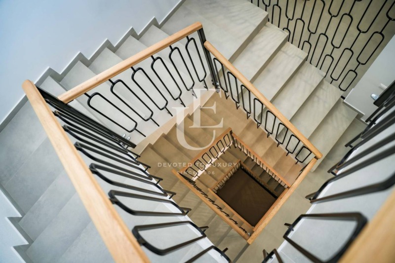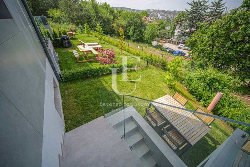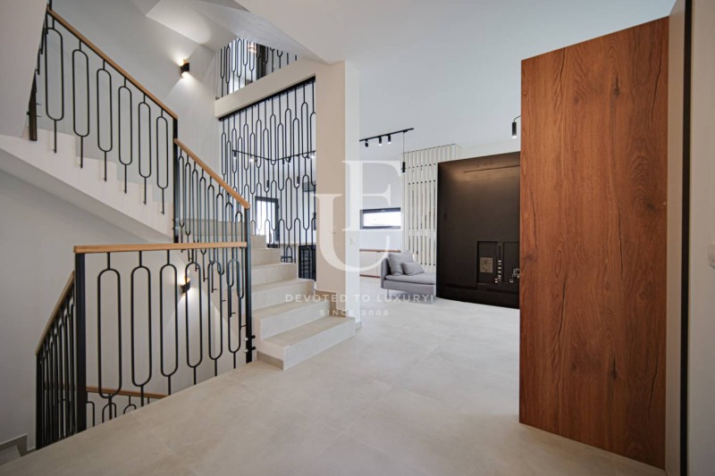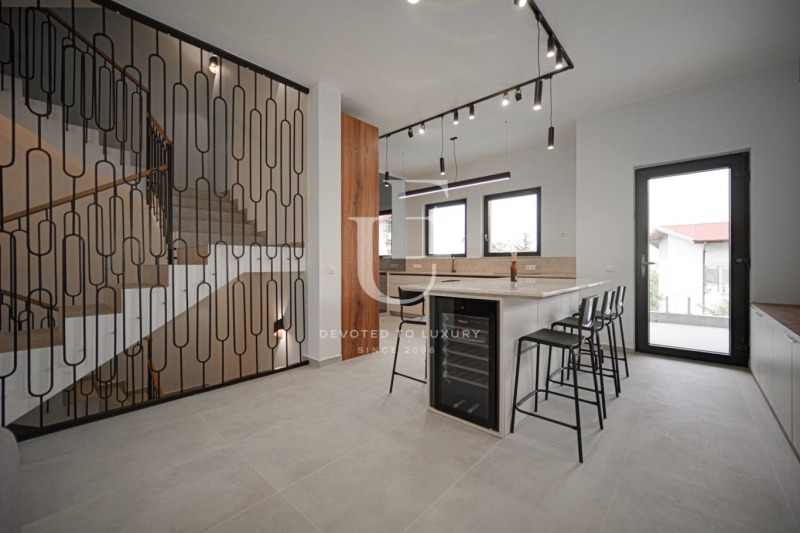 Unique Estates представя ексклузивно на Вашето внимание нова къща за продажба със съвременен интериор на отлично място в кв. Бояна, местност Гърдова глава. Къщата е с обща площ 399.56 кв.м., подземен двоен араж 26 кв.м. Идеални части от УПИ 252.83 кв.м. Индивидуален двор с градина 79 кв.м. Къщата е снабдена с различни първокласни удобства, френски прозорци с тройни стъкла, енергийно ефективно подово отопление, специален подземен паркинг за две коли, собствен асансьор планиран в центъра на стълбищната клетка, който може да бъде инсталиран в бъдеще и комфортна терасовидна градина на първият етаж и тераси към всяка стая.