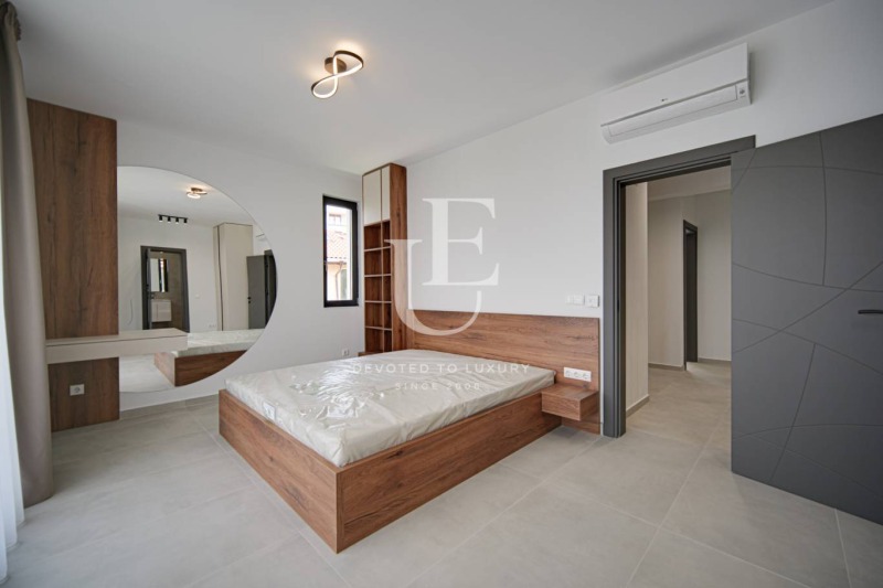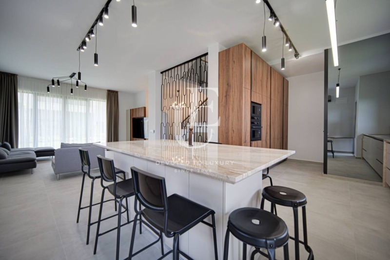 Първи етаж - просторна дневна с обширна трапезария и напълно оборудвана кухня, тоалетна за гости, стълбищно фоайе. От всички помещения на етажа има директен достъп до градината;
