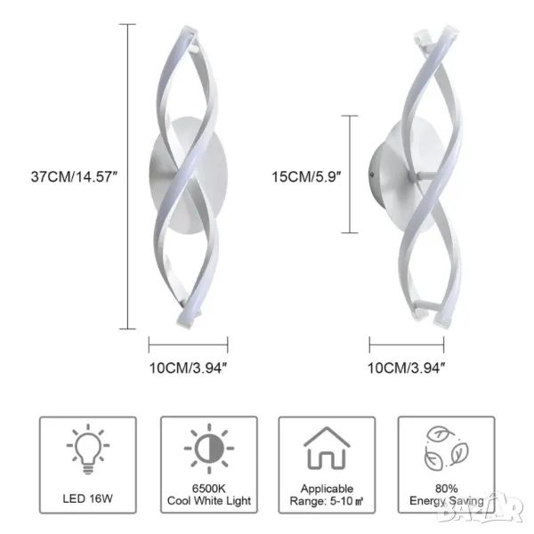 LED стенна лампа с вграден 16W LED чип, без нужда от инсталиране на крушки. LED светлината е по-равномерна и трае по-дълго, без отблясъци, по-широк обхват на светлината, ниска консумация на енергия.
