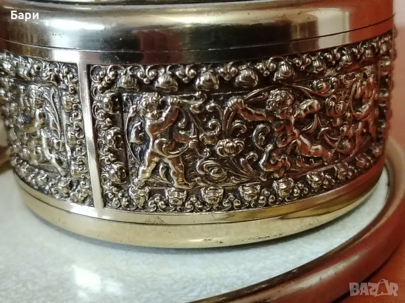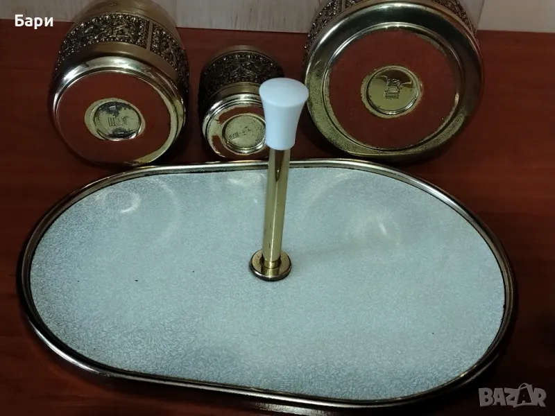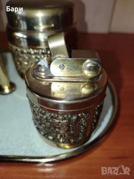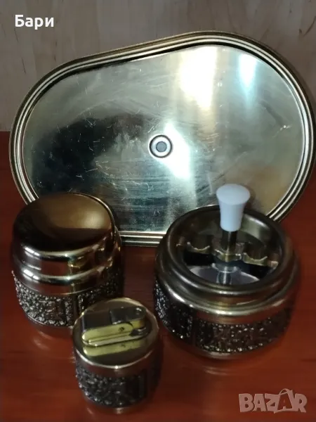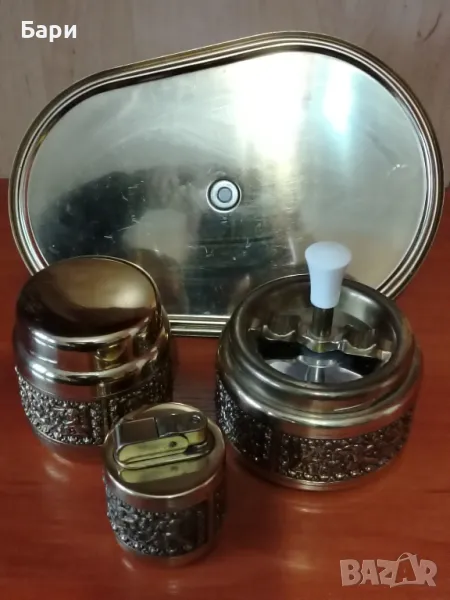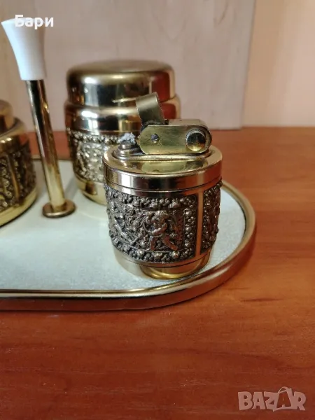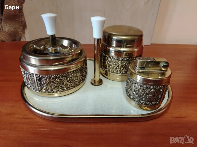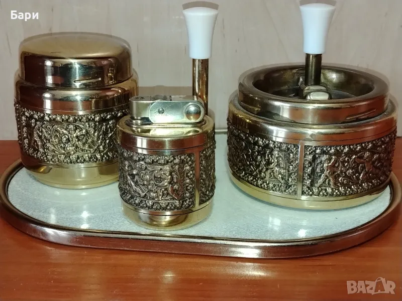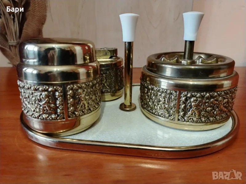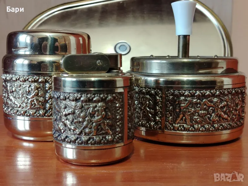 Продавам красив месингов комплект за пушене, с релеф на "Putti от Erhard & Sons", 1960 г., комплект от 4 бр.