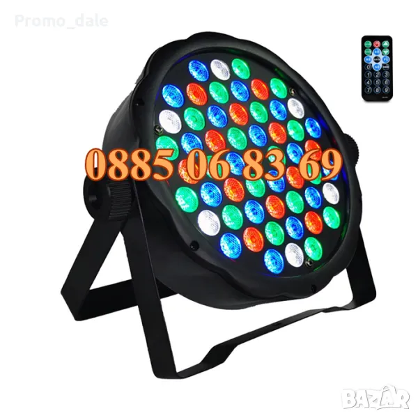 Диско прожектор 54 LED с дистанционно, дискотечен прожектор, диско осветление