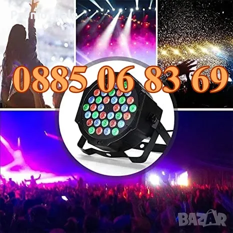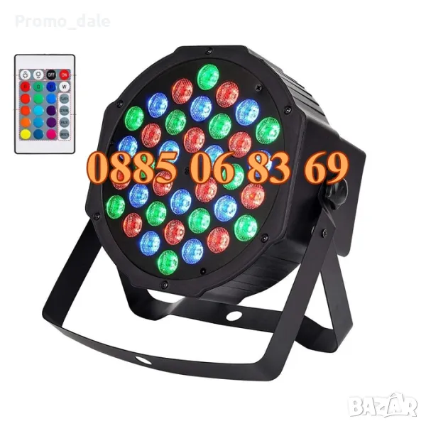 ДИСКОТЕЧНО ОСВЕТЛЕНИЕ С 36 ЛЕД ДИОДА С ДИСТАНЦИОННО, подходящо за: дом, къща, вила, зала, дискотека и др.