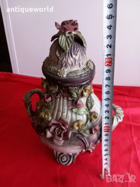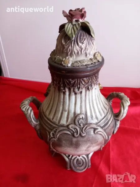 Басано, Bassano, Уникален Много Красив Италиански Ръчно Изработен Порцеланов Бисквит Съд , Урна , Ваза с Капак. Перфектен!