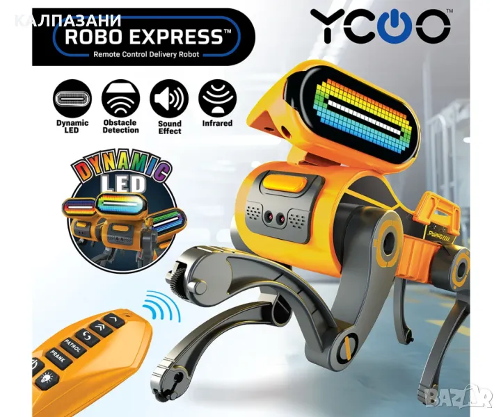 Пригответе се за приключение с ROBO EXPRESS, най-готиният робот с дистанционно управление с динамичен светодиод! С ROBO EXPRESS вие контролирате. Използвайте дистанционното, за да го накарате да върви напред и да се завърта. Това не е просто играчка, това е вашият личен асистент! Поставката за съхранение отзад е идеална за пренасяне на малки предмети и закуски. Просто ги сложете и гледайте как ROBO EXPRESS ги носи вместо вас! Но това не е всичко! ROBO EXPRESS се предлага с динамична LED функция. Само с един бутон можете да промените цвета на светодиода според настроението си или да играете на тъмно. Активирайте режима Патрулиране и ROBO EXPRESS става ваш личен пазач. Той ще се разхожда сам, като открива препятствия и ви предупреждава със звукови и светлинни ефекти. Това е като да имате собствена малка система за сигурност! А за майтапчиите има режим на шега. Просто сложи ръката си внезапно пред гърдите му и гледай как ROBO EXPRESS се шокира! Лицето му ще стане червено и ще издава гневни звукови ефекти. Това е чудесен начин да се забавлявате с приятелите си!