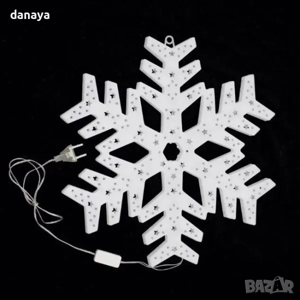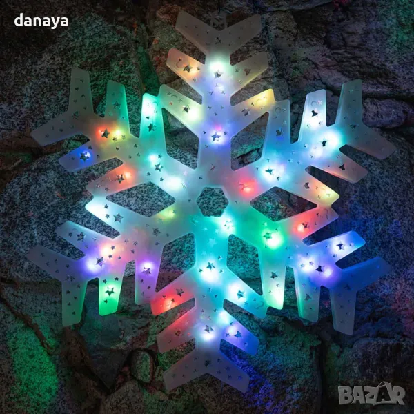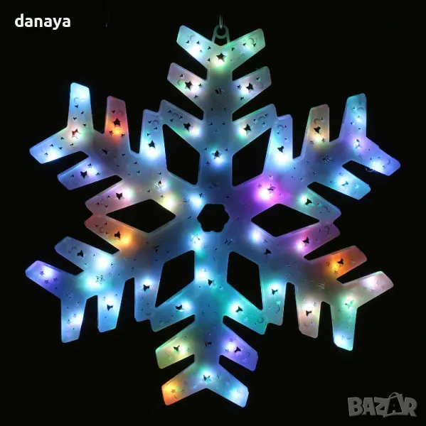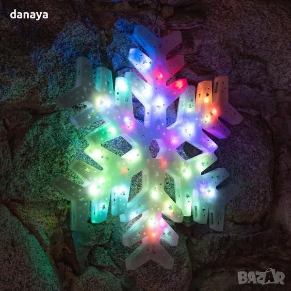 Светеща коледна фигура за окачване. Голяма светеща снежинка, красива декорация за дома или офиса. Светеща коледна украса, която създава весело предколедно настроение. Подходящ за декориране на прозорец, стена, стена или навсякъде, където може да се закачи. Работи на ток с цветни преливащи светлини.