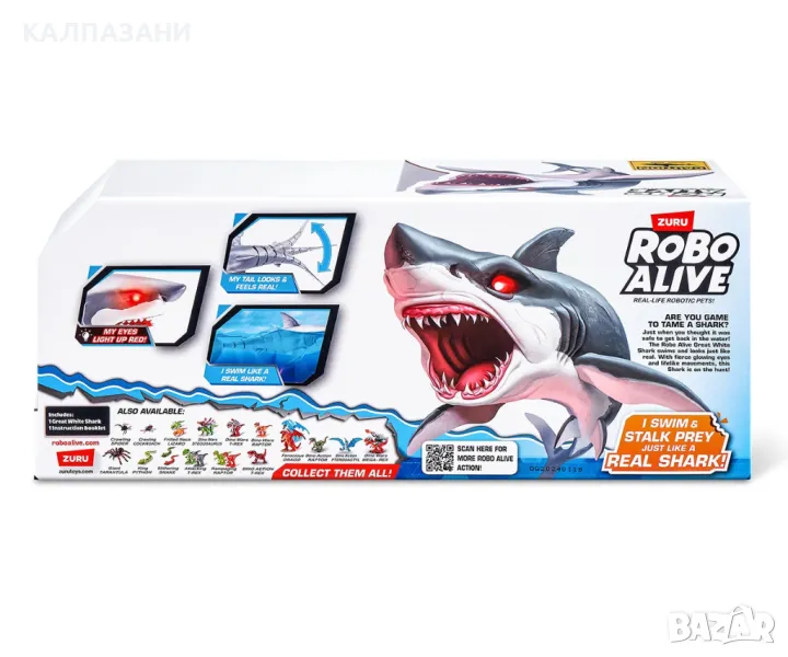 Искате ли да опитомите голямата бяла акула или ще бъдете следващата й плячка? Голямата бяла акула оживява във вода с усъвършенстваната технология за активиране във вода на ZURU и плува точно като истинска акула. Ще уплашите приятелите и семейството си за нула време. Със свирепи, светещи очи и движения, тази акула е тръгнала на лов!
