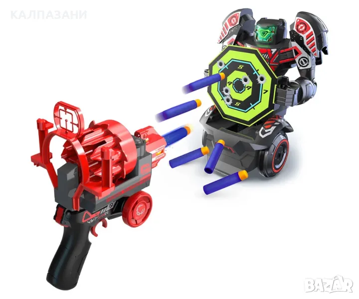 Безопасността е от първостепенно значение, затова нашите стрелички са изработени от EVA, мек и безопасен материал, осигуряващ безпроблемна игра за всеки. Освен това, както роботът, така и дистанционното се захранват от акумулаторни батерии, което гарантира продължителни игрови сесии без прекъсване.