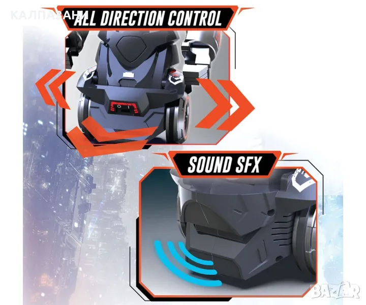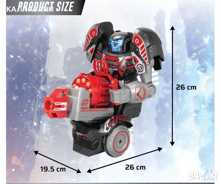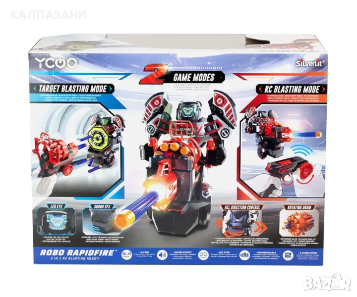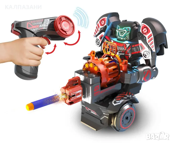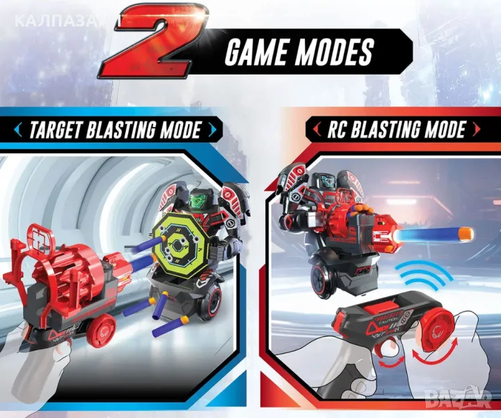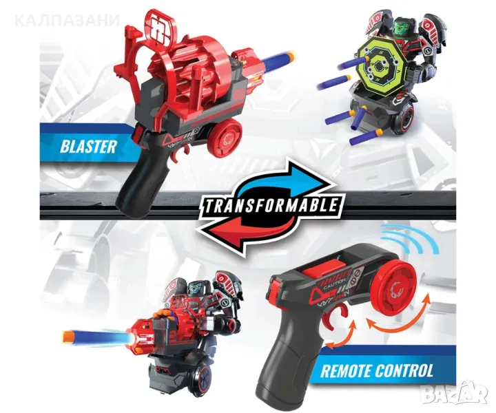 Представяме ви ROBO RAPIDFIRE – 2-в-1 робот за взривяване с дистанционно управление! Взривяващ робот с дистанционно управление и в същото време дистанционното може да се трансформира в Blaster, като роботът се трансформира в движеща се мишена, предоставяйки революционна игра за деца и родители.