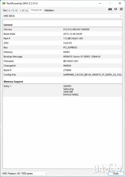 Chipset/GPU Model: AMD Radeon HD 8470/Caicos XT