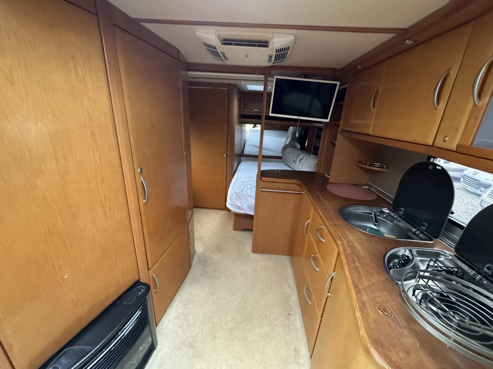 Караваната е с подменена вентилация, всички електрически кранчета са сменени с оригинални. Също така има химическа тоалетна, кожен салон, нови матраци и матрак за дивана. Черни прозорци. Автокъщата се намира в с. Хайредин, област Враца. Предлагаме съдействие в КАТ при регистрация на автомобила.