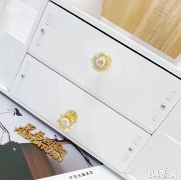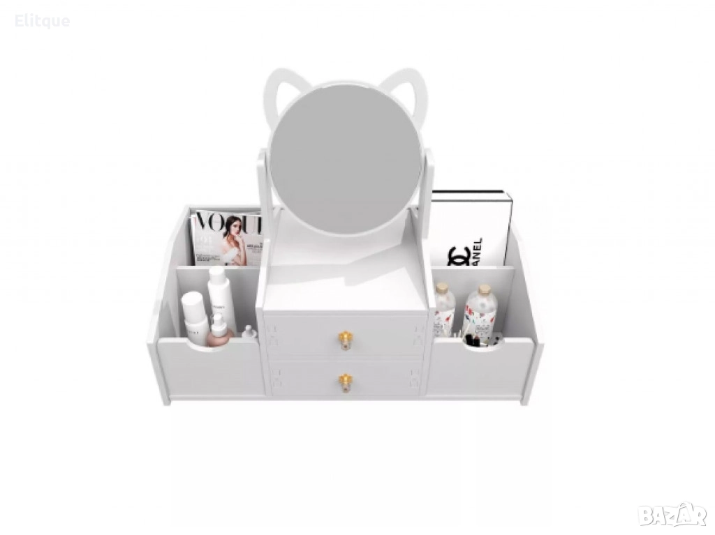 Органайзерът разполага с 4 отделения за различни козметични продукти и аксесоари, както и 2 чекмеджета за по-малки предмети.