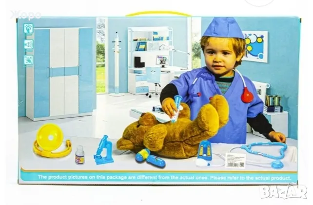 Тази детска играчка разполага с всички основни и необходими зъболекарски инструменти ,които с помощта на батерии работят и издават звук и светлина като истинските инструменти на истински зъболекар , допълнително с тях има и лекарска престилка и шапка