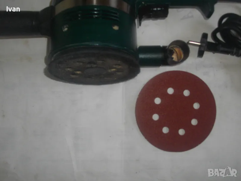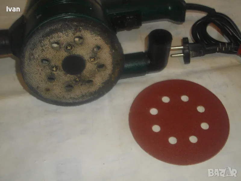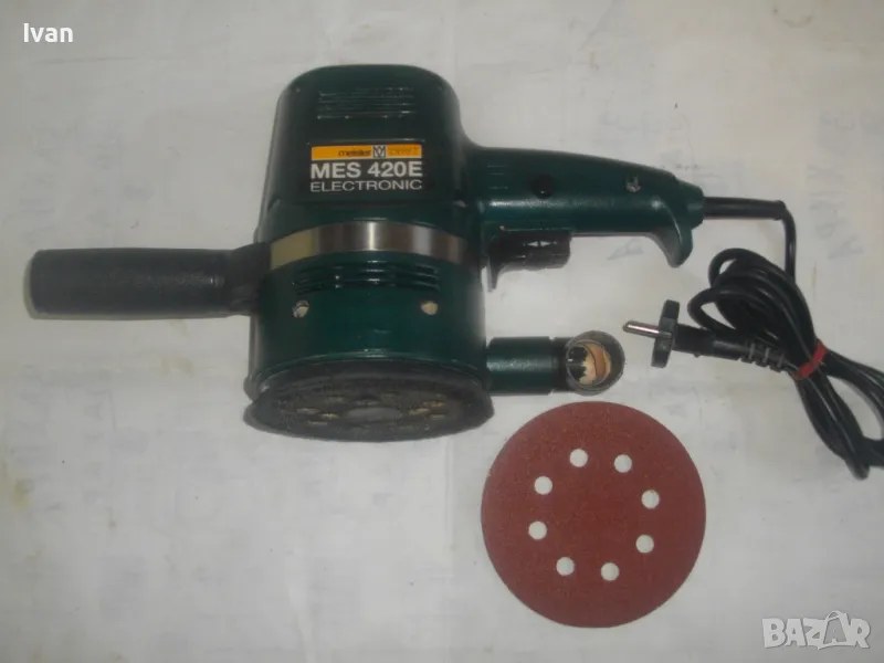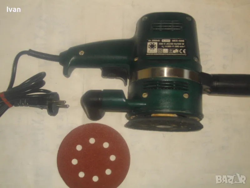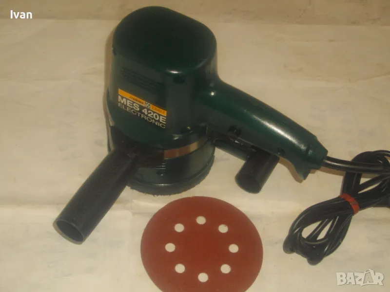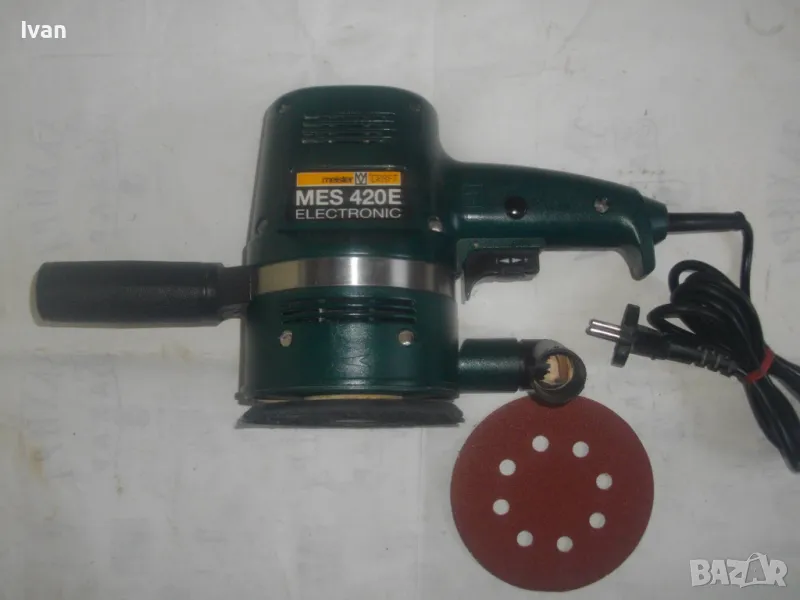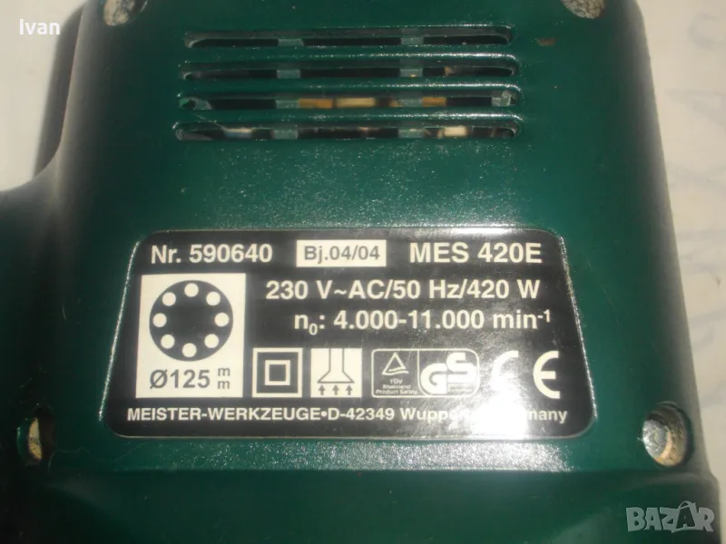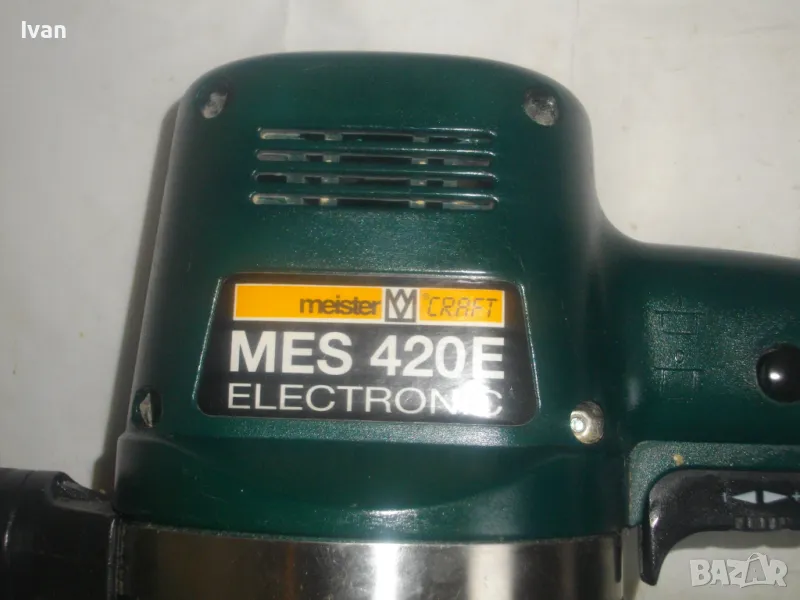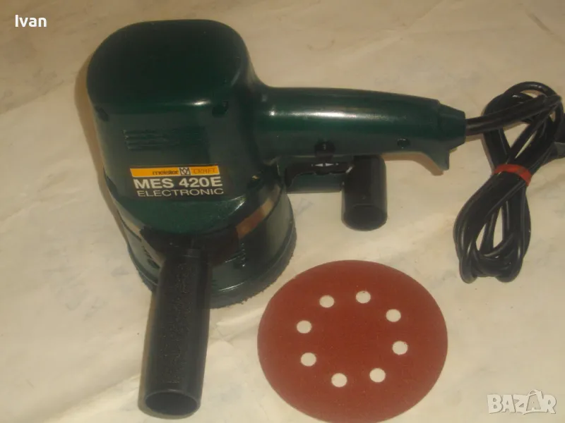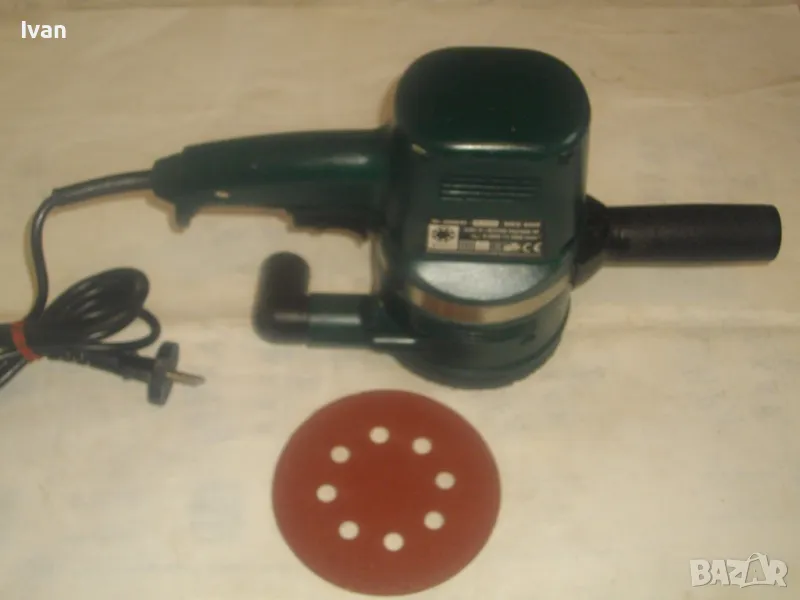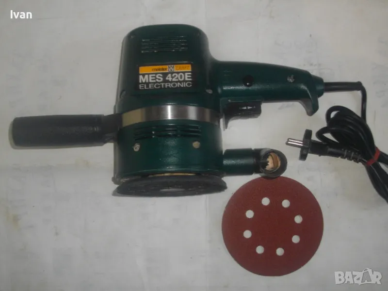 Електрически кръгъл ексцентър виброшлайф ф125 мм 420 вата на MEISTER CRAFT - оригинален немски 2004г. Отлично работно състояние със запазен външен вид. Марка модел характеристики производство производител Meister Craft MES 420E Electronic - Meoster Werkzeuge Wuipertal - Germany. Производство 2004 г. Мощнот - 420 вата, скорост 4000-11 000 об/мин. Прот пита тип Велкро самозалепващи елементи - размер ф 125 мм. Към машината - 1 бр. нова велкро шкурка. Оригинален прахоуловител накрайник за скачване с торба за прах или строителна прахосмукачка. Оригинална ригулируема странична дръжка. Автозащита на спусъка. Регулация на скоростта с потенциометър на спусъка. Тегло на машината - 2,2 кг.