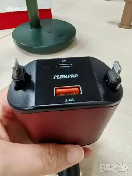 PLDHPRO Red 4 в 1 прибиращо се зарядно за кола, 80W с 82 см прибиращ се USB-C и iOS кабел