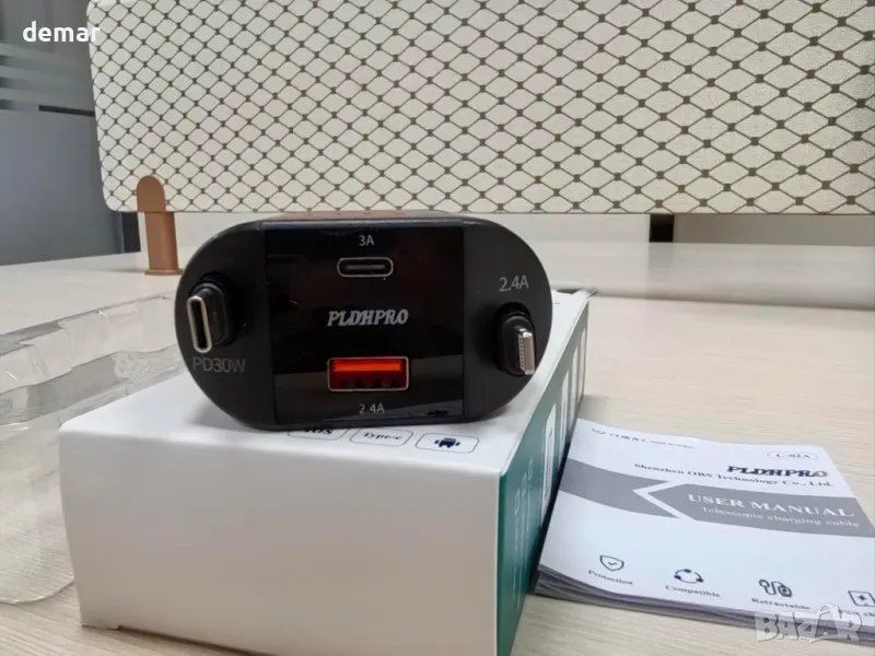 Това зарядно за кола разполага с два прибиращи се кабела с дължина 82 см/2,7 фута – един за Type-C и един за iOS – което го прави удобно за бързо и безпроблемно зареждане в движение. Той поддържа бързо зареждане с мощност от 80 W, доставяйки 30 W за USB-C, 20 W за iOS и по 15 W за допълнителни USB-C и USB-A портове, което значително намалява времето за зареждане. Изработен от издръжлив алуминий и ABS, той гарантира безопасност от презареждане, свръхток, високо напрежение, прегряване и късо съединение. Съвместим с 12V и 24V превозни средства, той работи безпроблемно с различни устройства, включително iPhone, Samsung Galaxy, таблети, лаптопи и др. Регулируемият на 180 градуса щепсел осигурява сигурна връзка, дори при неравни пътища, за да предотврати прекъсвания на зареждането.