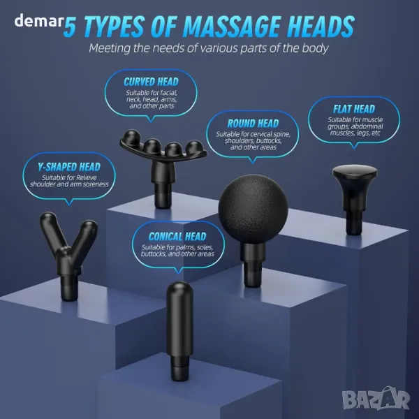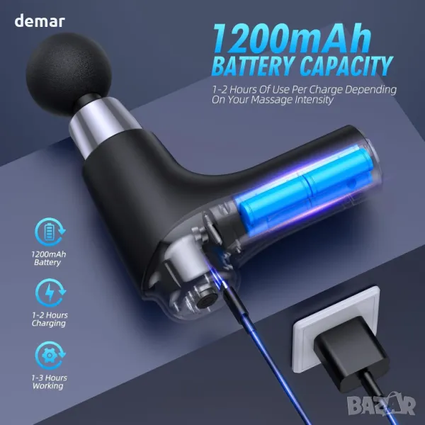 Пистолет за масаж Deep Tissue, Пистолет за масаж с 6 приставки, Масажор за перкусия на мускулите