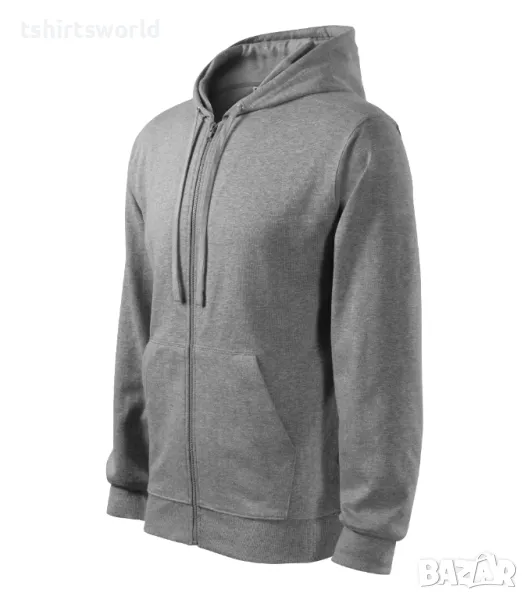 Нов мъжки суичър с ЦИП и качулка в цвят тъмносив меланж
