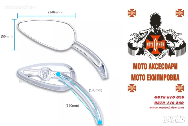 МОТОЦИКЛЕТНИ ОГЛЕДАЛА ИЗРАБОТЕНИ ИЗЦЯЛО ОТ МЕТАЛ (УЛТРА - ВИСОКОКАЧЕСТВЕН АЛУМИНИЙ) И ХРОМ.