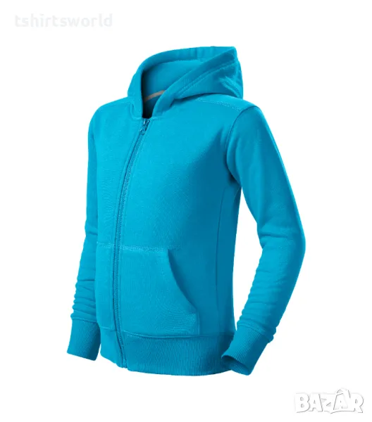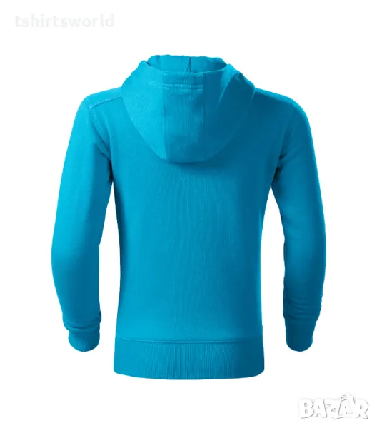 Нов детски суичър с ЦИП и качулка в тюркоазено син цвят