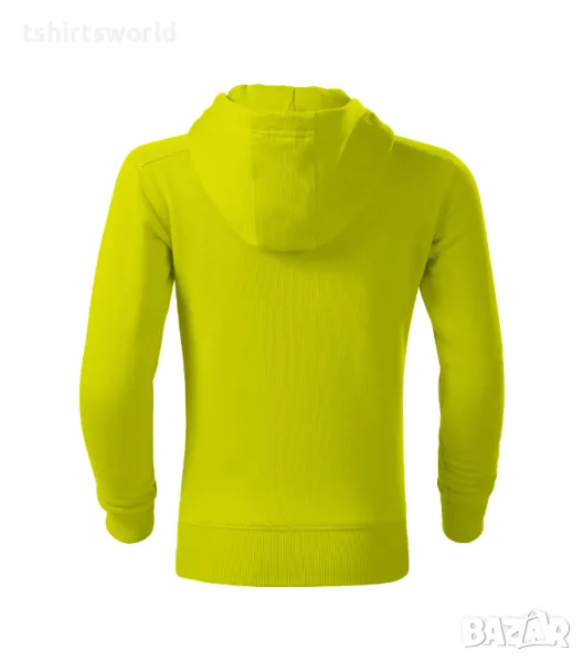 Нов детски суичър с ЦИП и качулка в цвят зелен лайм