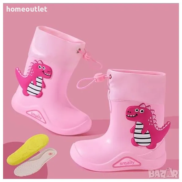 СКУ: ГУМЕНИ БОТУШИ SMALLY (РОЗОВО, С ДИНОЗАВЪР) СТЕЛКА - 180ММ (18СМ)