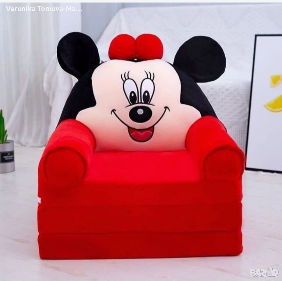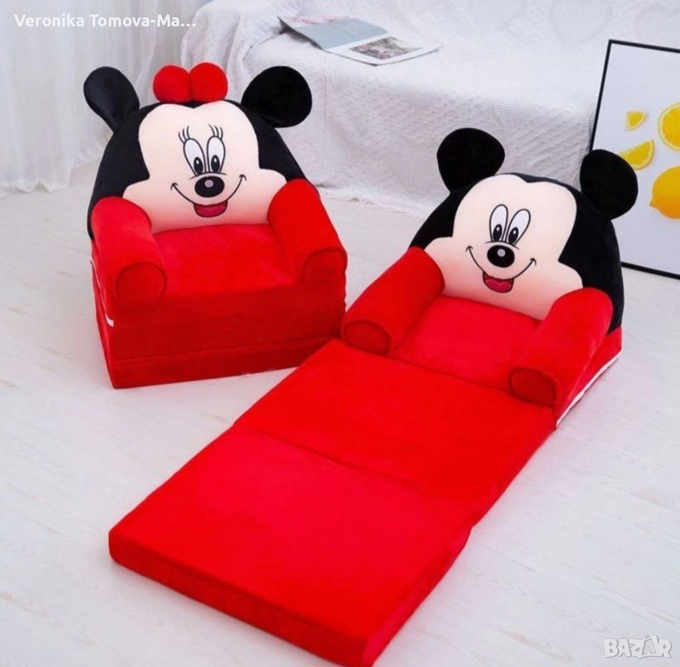 Плюшени кресла Мини Маус,Спондж боб и пепа пиг.Стават на легло 50см/120см.Работим с куриерска фирма Еконт.
