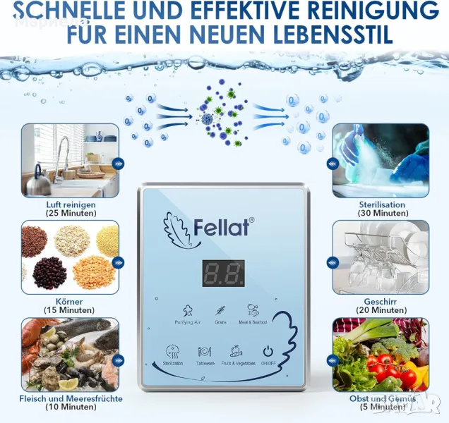 Нов Генератор на озон, домакински генератор на озон FELLAT 600 mg/h за вода и въздух, пречиствател
