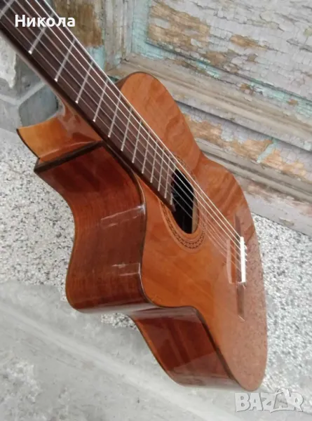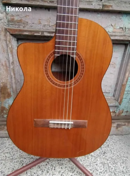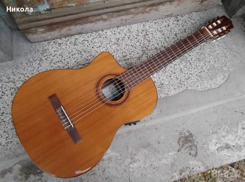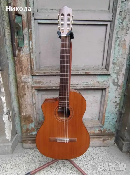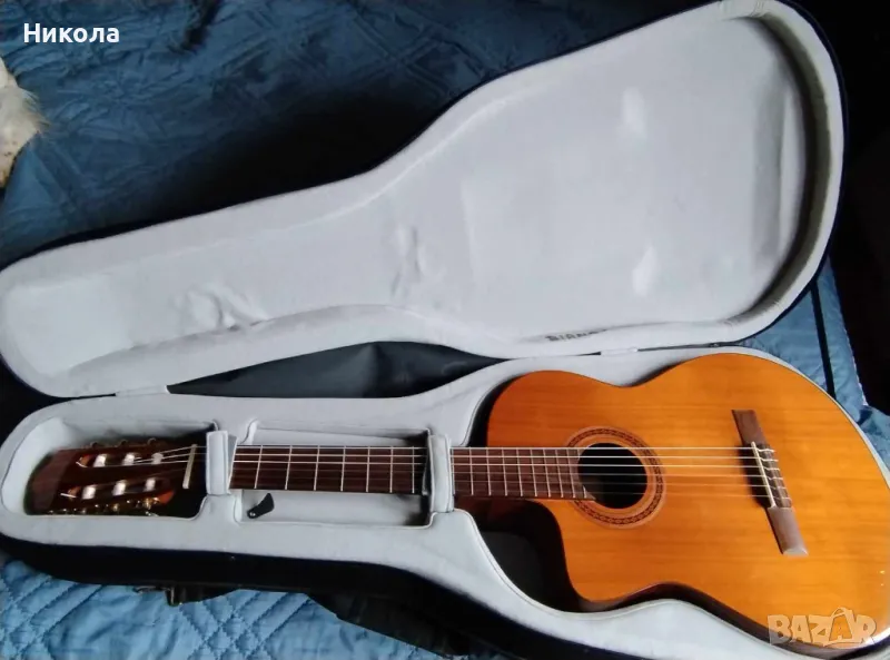 Отлична,качествена,електро-акустична класическа китара с найлонови струни.Незначителни следи от употреба.Чисто нови струни и батерия.Куфар.