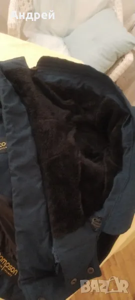 Якето е много красиво и изкл. топло. Със сваляща се качулка, която е с мек каракул. Не е носено, ново! Цвета е петролен. Размер XL. Отговаря напълно.