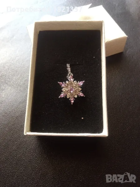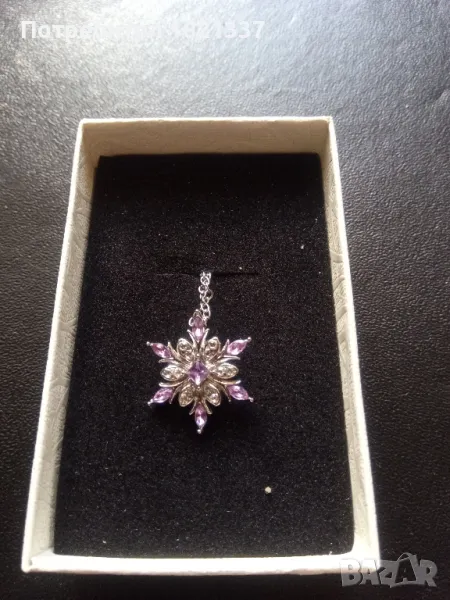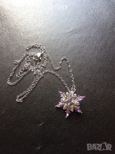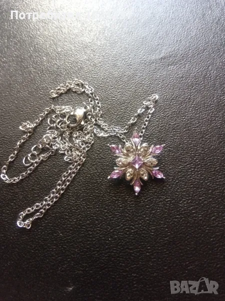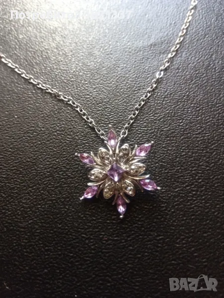 Колие с кристалиФорма на снежинка. Цветове бял и лилав.