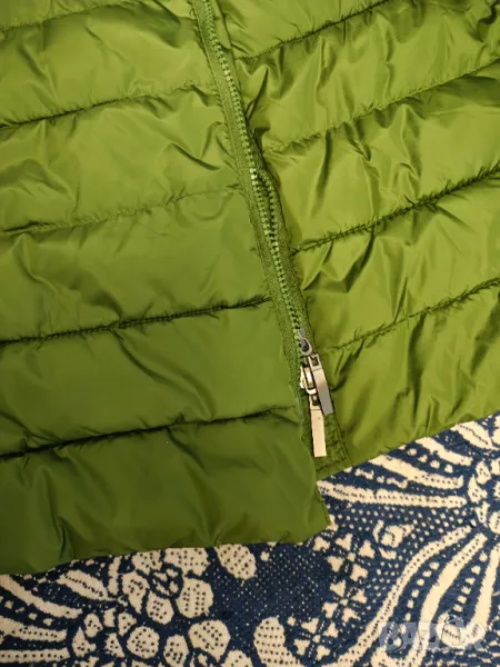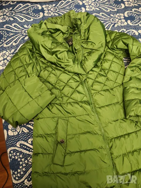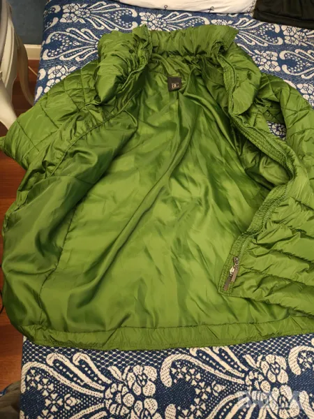 Страхотно яке с естествен пух и пера във великолепен зелен цвят двоен цип красива яка.Размер по етикет 36 но е уголемено .Дължина 80 см Талия едностранно 43 см рамена 43 см .Подарък ми е от Америка Обличала съм го веднъж но ми е тясно.Цената е крайна без бартери