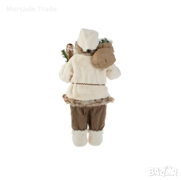 Коледна реалистична фигура Дядо Коледа, Екрю, Имитация на кожа и снегоходки, 60 см