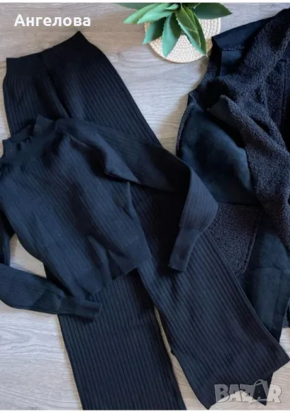 Комплекти от стегнато меко плътно плетиво. Цветове камел и черно. Размер С-М.