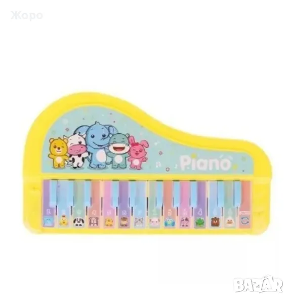 Пиано работи с батерия, клавишите могат да свирят различни песни и могат да създават животински звуци,както могат да свирят свободно