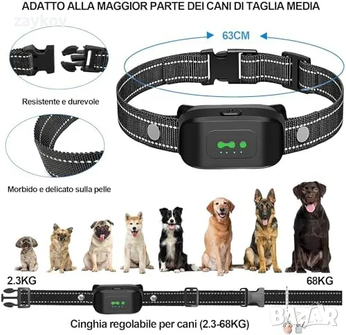 Главен контрол с animoul регулируема яка. Проектиран за оптимален комфорт, този нашийник разполага с мека лента без мирис, която осигурява меко усещане за кучета от всякакъв размер. Подходящ за големи, средни и малки породи с обиколка на врата от 6 до 27 инча, нашият нашийник е идеален за кучета с тегло между 5 и 120 паунда. Той лесно съчетава комфорт и функционалност