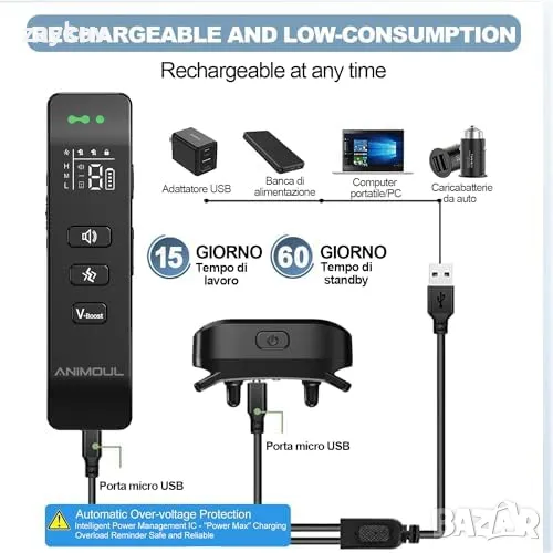 Отличаващ се с 3 режима на обучение на хора, animoul Anti Bark Collar предлага режим на звуково предупреждение (8 различни звука), режим на вибрация (3 нива) и режим на усилване на вибрациите. С обхват на дистанционното управление до 3300 фута можете ефективно да тренирате кучето си на закрито или на открито, независимо дали в парк, градина, плаж, гора или открито поле.