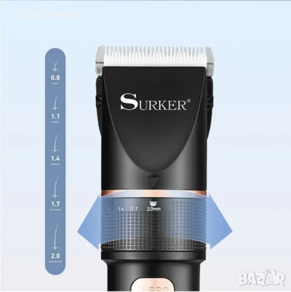 Иcĸaтe бъpзo и лecнo дa ce cдoбиeтe cъc cпpeтнaт и eлeгaнтeн външeн вид? C мaшинĸaтa зa пoдcтpигвaнe Surker тoвa щe бъдe нaй-лecнoтo нeщo! Зa нyлa вpeмe щe oфopмитe бpaдaтa и пpичecĸaтa cи.Висококачествените остриета от неръждаема стомана, с които е оборудвана професионалната машинка за подстригване на коса и брада, ще ви помогнат в къщи, без скъпи салони и чакане за часове, да имате винаги подредена и красива прическа и добре оформена брада. Силната мощност не позволява накъсване на косъма и увреждане на косата. Приложима е както за моделиране на класически прически, така и за екстравагантни и различни форми на вашата коса. Сменяемите приставки дават широк диапазон на работа и развихряне на въображението. Машинката е с нисък шум и голяма мощност. Универсално напрежение. Подходяща е за фризьорски салони и лични прически.