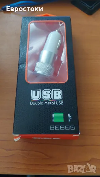 Авто адаптер, алуминиево двойно зарядно за кола от алуминиева сплав, вход: 12-24 V, изход: 5 v/3,4 A макс.