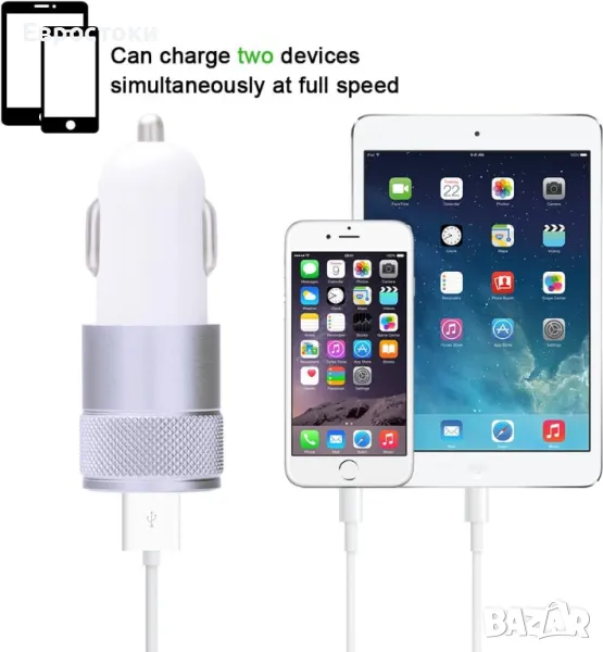 3.4A двоен USB порт зарядно за кола, съвместим с iPhone 7, 7 Plus, 6 Plus, 6S, 5S, 5C, 5, 4S, iPad air, Ipad mini, iPods touch, iPod nano.