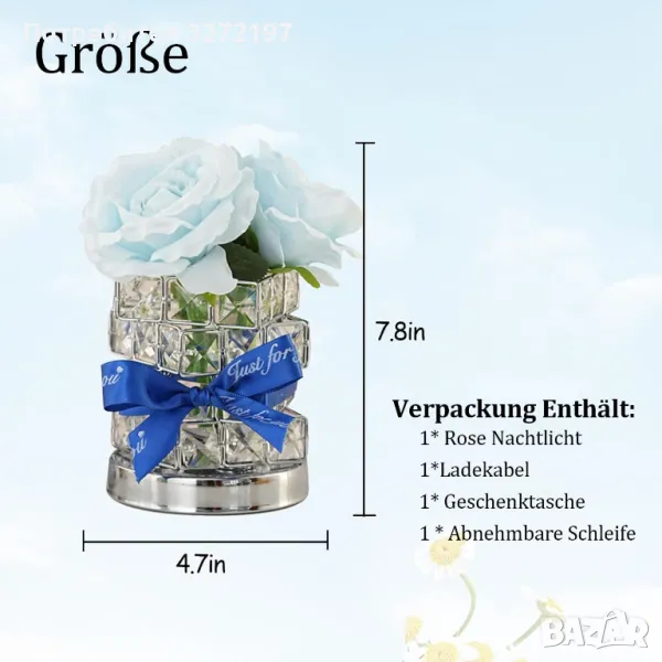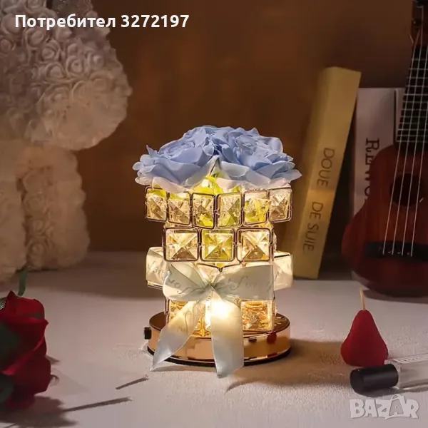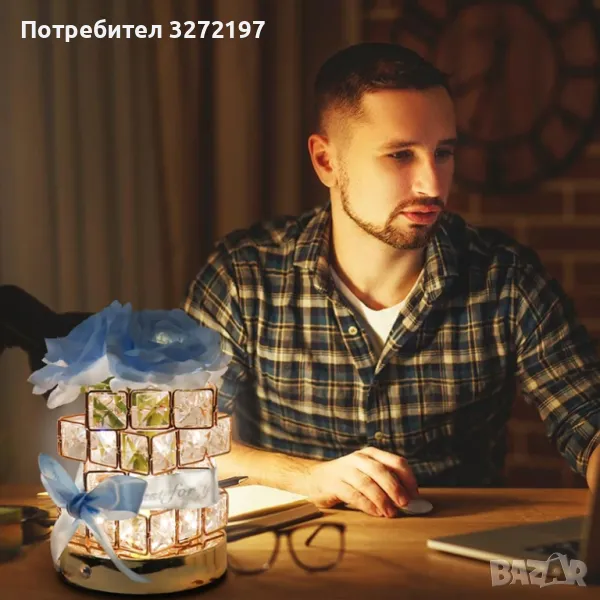Синя Роза USB,Димируема Настолна Лампа от Кристал