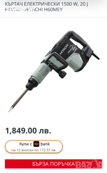 къртач Хикоки / Хитачи с електронно регулиране на мощността. Машината е в отлично визуално състояние, също така работи перфектно без никакви странични шумове или проблеми. Оригинално малайзийско производство от 11.2023г. внос от Франция. Къртача се продава се така, както си е на снимките.