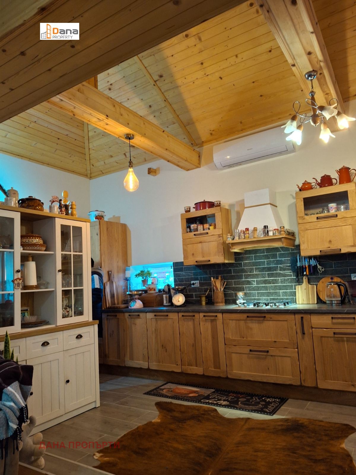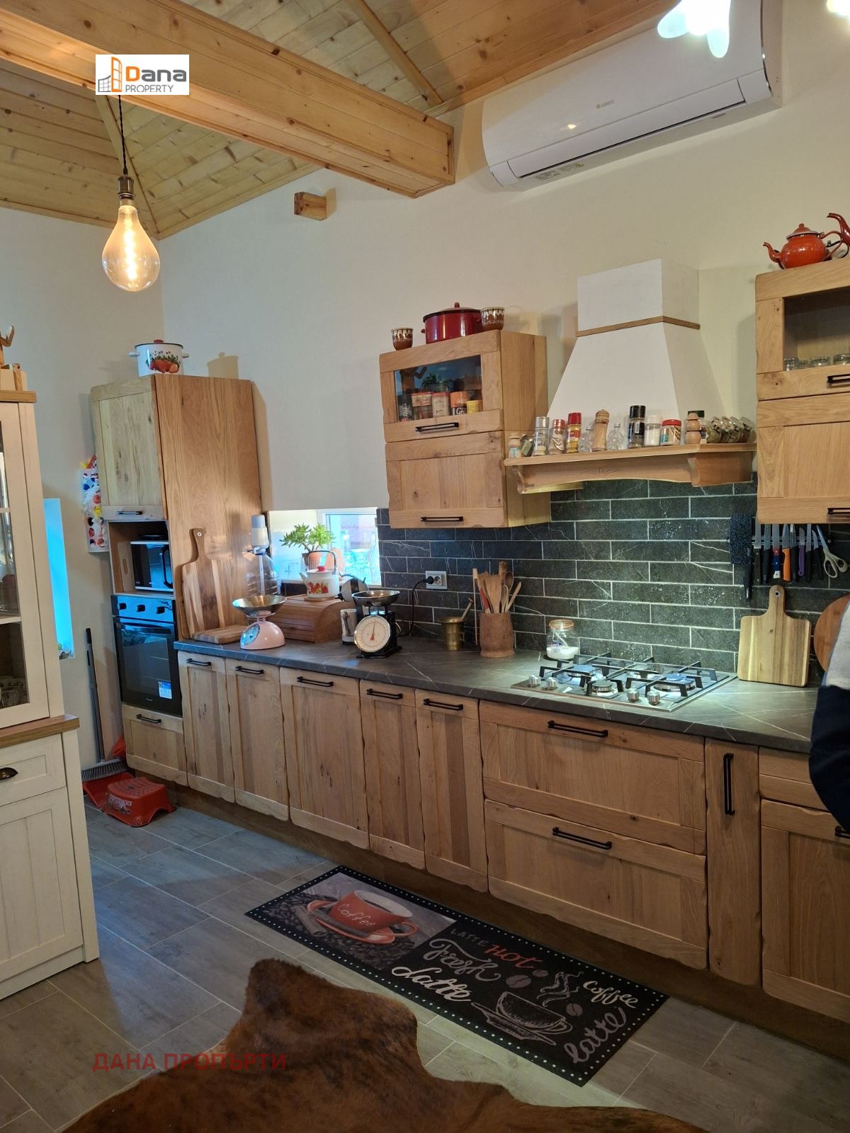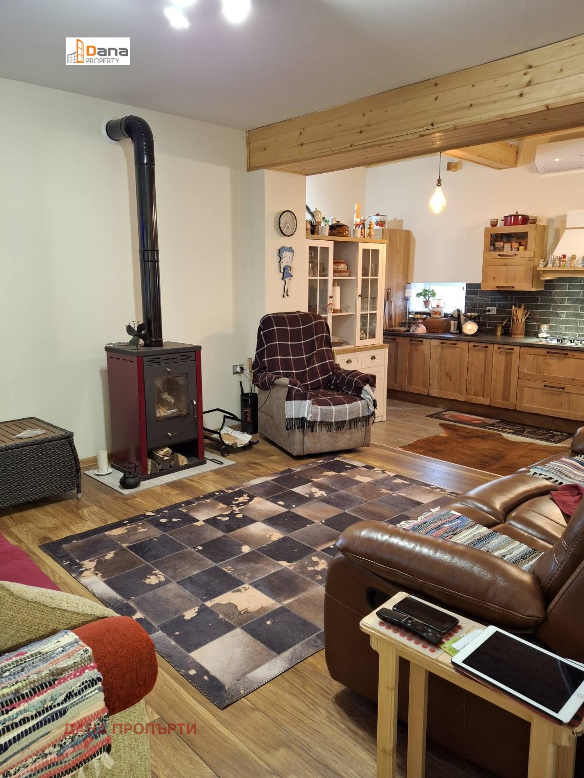 С обща площ от 125 кв.м., къщата е в Скандинавски стил и разполага с 2 входа, предверие, просторна и слънчева всекидневна ,оборудвана с камина , трапезария отоплени и от климатик (широко Г образно пространство), коридор, 2 спални, едната с тоалетна, отделно просторна баня която има тоалетна, душ и вана. Къщата е с изолация както отвътре, така и отвън, което гарантира отлични енергийни показатели и комфорт през всички сезони.