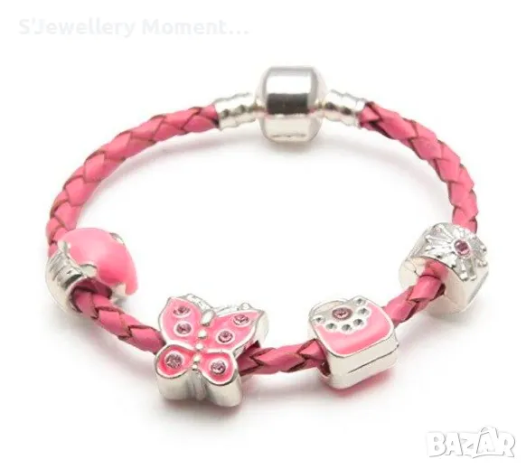 Кожена гривна в розов цвят тип Пандора, колекция Pandora Moments.