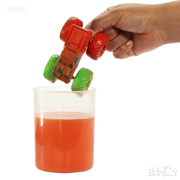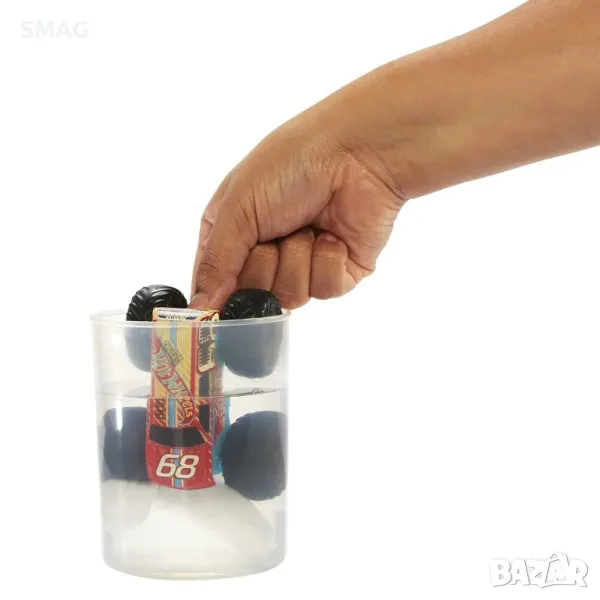Hot Wheels® Monster Trucks Color Reveal™ забавляват децата с невероятни изненади! Във всеки цилиндър има превозно средство Hot Wheels® Color Lightning в мащаб 1:64, покрито със специално покритие Color Reveal™ и резервоар за вода с щипка. За първоначалното разкриване напълнете цилиндъра с вода и завъртете превозното средство в него, докато водата промени цвета си, след което го издърпайте, за да разкриете Monster Truck и неговия дизайн! Искате ли да промените външния му вид отново? Напълнете цилиндъра със студена вода и потопете превозното средство, за да гледате как цветовете магически се променят! Сменете го отново, като го потопите в гореща вода! Използвайте резервоара за вода, за да напръскате светкавици и да промените външния им вид. Децата ще искат да ги съберат всички!
