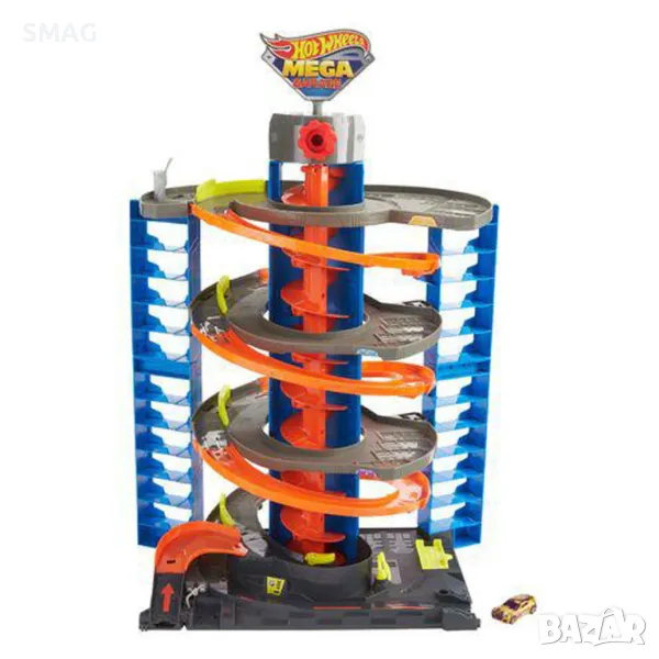 Hot Wheels™ City Garage има четири нива на невероятно забавление! Включва една кола в мащаб 1:64, но можете да съхранявате още 60 (други превозни средства се продават отделно). В центъра има въртящ се асансьор, който отвежда колите до различни нива и ги пуска на пистата. Децата го управляват с манивела и решават дали колите да продължат към други приключения или да влязат на паркинг. Множество точки за свързване на основата позволяват на децата да свързват комплекта с други комплекти Hot Wheels (продават се отделно) и има допълнителни четири изхода за свързване на оранжеви части, за да изградят най-добрия комплект Hot Wheels. Комплектът включва кола Hot Wheels, за да започнете действието веднага!