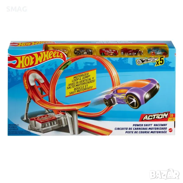 Hot Wheels® за безброй битки. Включва моторизиран стартер за трикове и катастрофи и 5 коли Hot Wheels®.